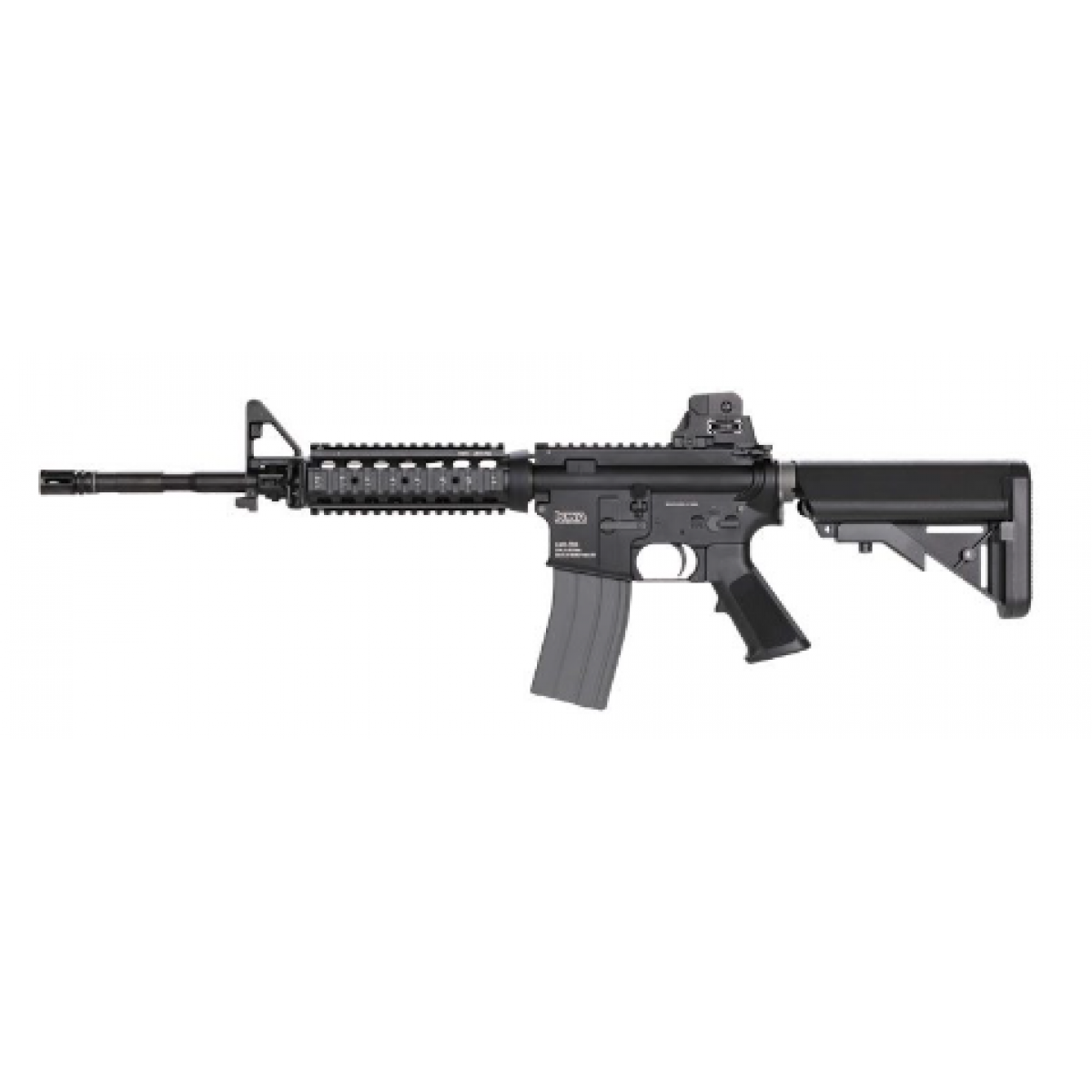 The KWA M4A1 RIS LM4 PTR Gas Blowback GBBR Rifle gives you a more immersive shooting experience to dominate the field. The free float, detachable quad picatinny rail gives you plenty of room for lasers, flashlights, or other compatible accessories of your choice. An adjustable rear sight along with a front triangle sight gives you better perception from close to mid-range. The rear sight can be removed to make more room for other sights or accessories of you choice. sling rings on the front and back of the rifle enable your favorite slings to latch on and secure your rifle. The retractable stock can be adjusted to your personal preference and give you a more stable shot. The KWA M4A1 RIS LM4 PTR Gas Blowback GBBR Rifle is a quality M4 with features that is sure to give you an optimal shooting experience.